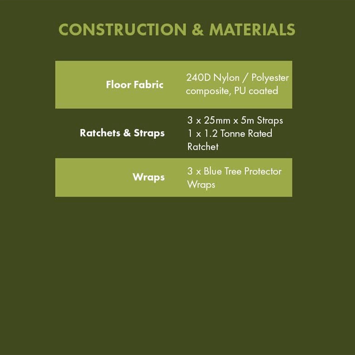 | Components | 1 x Duo 2-Person Hammock (Black Mesh) 3 x Understorage Nets 3 x Heavy-Duty Large Ratchet Buckles (2.5 Ton breaking strength) 3 x 6m / 19 ft Polyester Straps 3 x 1.5m Blue Tree Wraps with Velcro 1 x Hammock Bag |