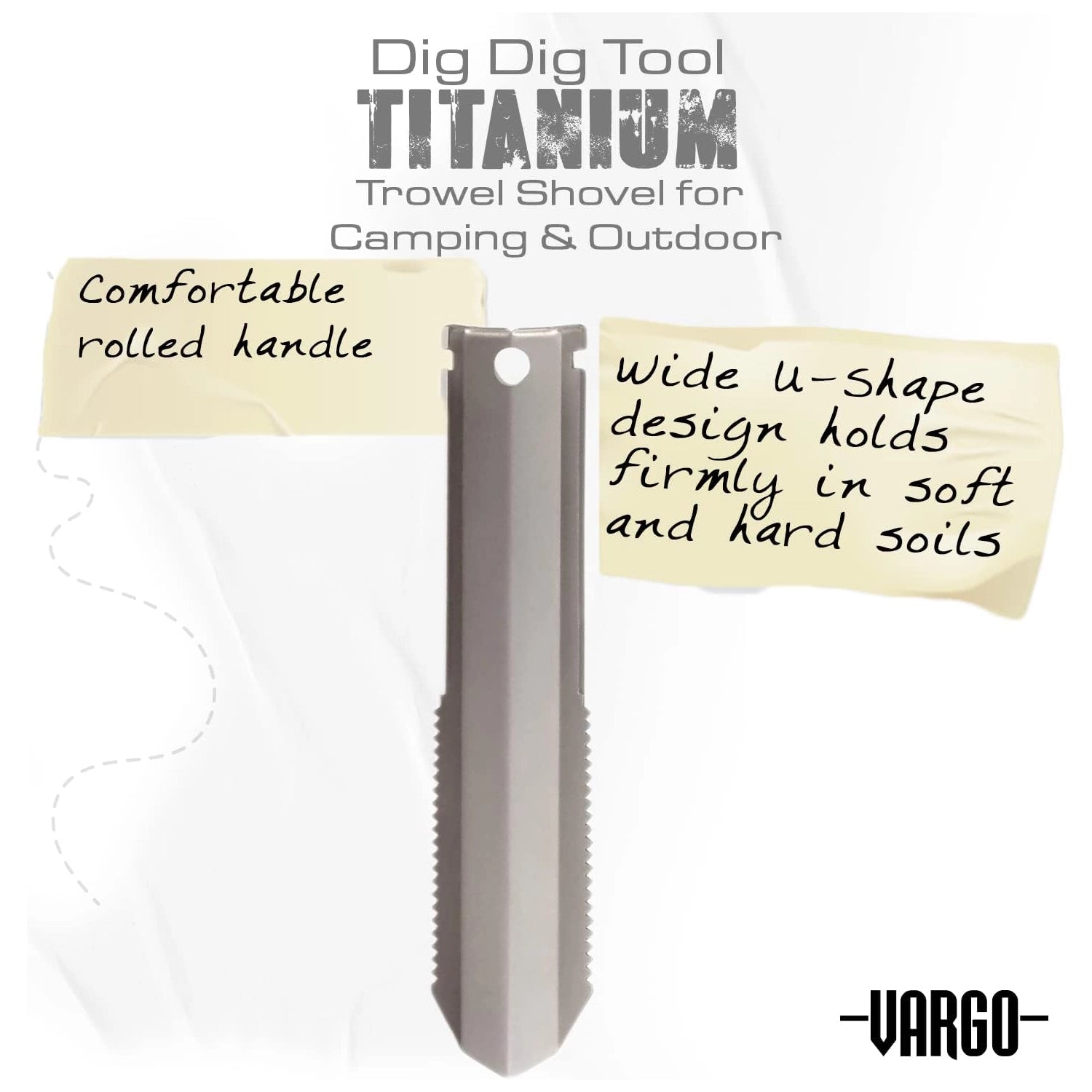 Make quick work of digging catholes AND securing your shelter with the Titanium Dig Dig Tool™. The Dig Dig Tool's™ ergonomic design is easier and more efficient to use while its rounded handle won't ""dig"" into your hand like other trowels. Its serrated edges slice through tough ground and roots so it can dig where other trowels can't. As a tent stake, its wide U-shape design holds firmly in hard and soft soils alike (even snow or sand!).