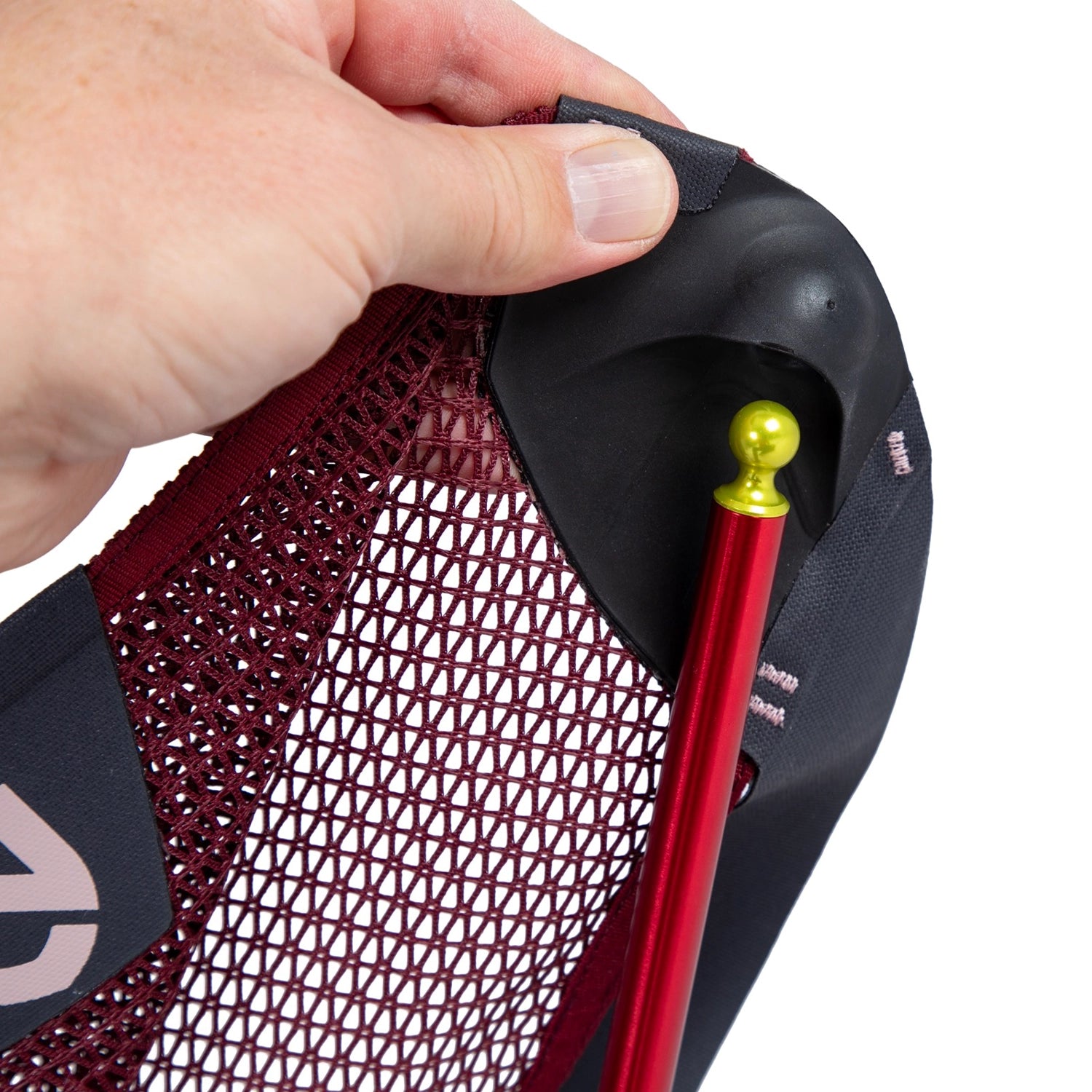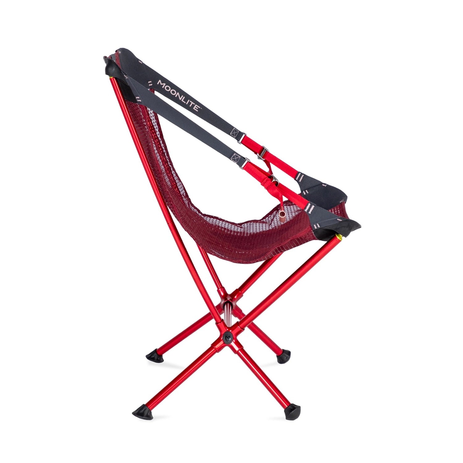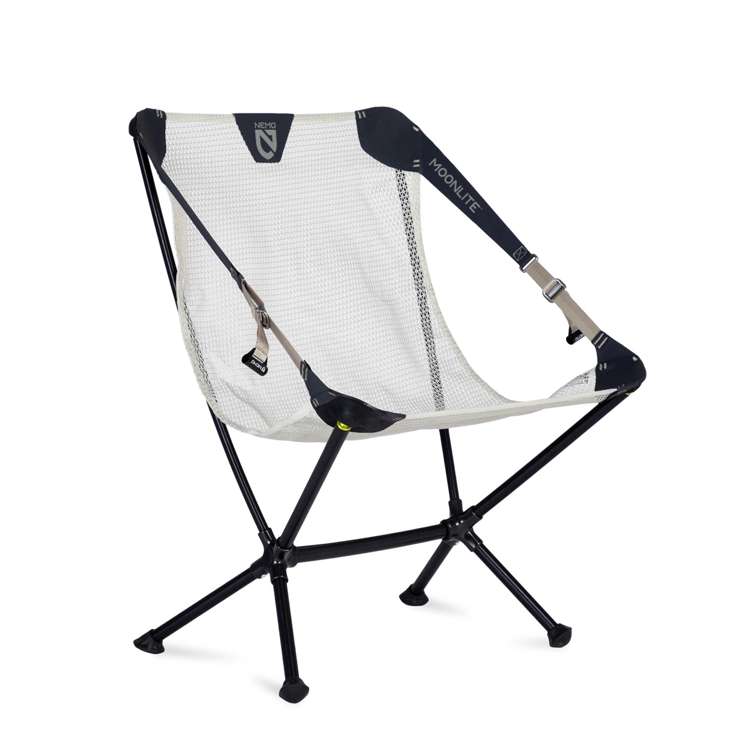 The exceptional comfort of the Moonlite chair comes from a custom-engineered, asymmetrical mesh that stretches to accommodate and support a variety of body types without needing seams. This unique seamless seat attaches to the frame with Y-molded ball-and-socket connectors that rotate and align with your body to avoid uncomfortable pressure points. The adjustable seating position paired with quality construction make for a transformative sitting experience in a packed weight and size that fits any adventure. True to our mission of sustainability, Moonlite uses 100% post-consumer recycled materials for the webbing and mesh, while the reclining hardware and seat mesh are bluesign® approved.