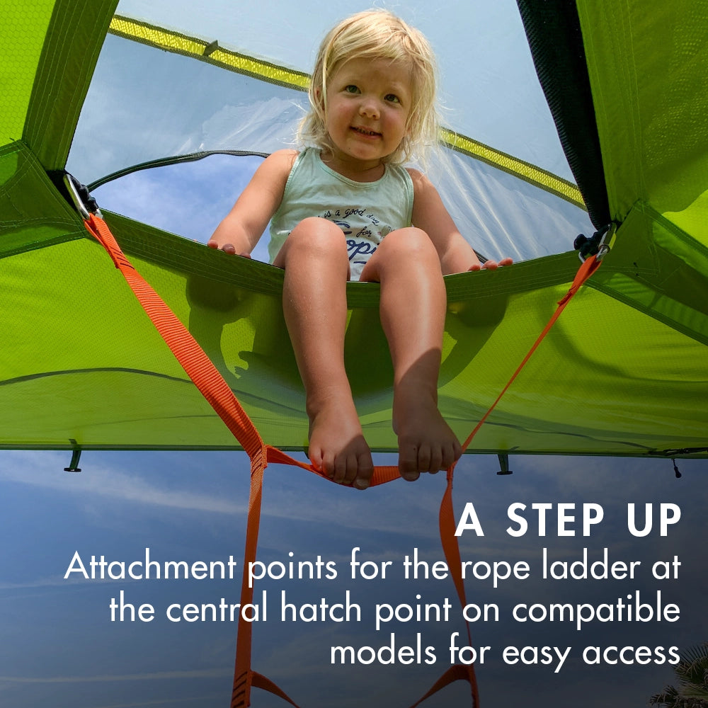 Tentsile's webbing ladder makes it simple to climb into your tree tent or hammock and is essential if you're planning on a multi-story Tentsile stack. The ladder is 6 feet long (1.8m) and is composed of an ultra-lightweight 25 mm-wide reinforced polyester fabric weighing 114 grams. The Tentsile Webbing Ladder is made of polyester 25mm webbing and comes in a pouch with two 'Quick Link' connectors. It is the lightest weight and strongest webbing ladder on the market. Compatible with the Stingray, Connect, Trillium, Safari Stingray, Safari Vista, Safari Connect, and Safari Trillium. This ladder is not compatible with the UNA, Flite, or T-Mini Hammock Tents.