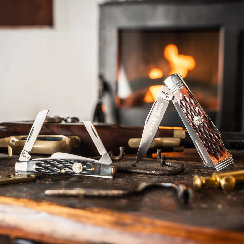 The Boker Traditional Series 2.0 takes the ephemeral out of time and is the answer to yesterday for tomorrow. Equipped with a drop-point and a sheepsfoot blade, the Boker Double Lock Trapper is more flexible in everyday use than almost any other knife. The D2 blade steel used is characterised by high edge retention and its corrosion resistance. The pocket-knife is opened as usual with a nail nick, while a backlock is responsible for locking each blade. For a traditional touch, the brown handle made of textured bone is framed by silver bolsters at both ends of the handle and is stylishly accentuated by three studs. Timelessly beautiful and moulded from tradition.