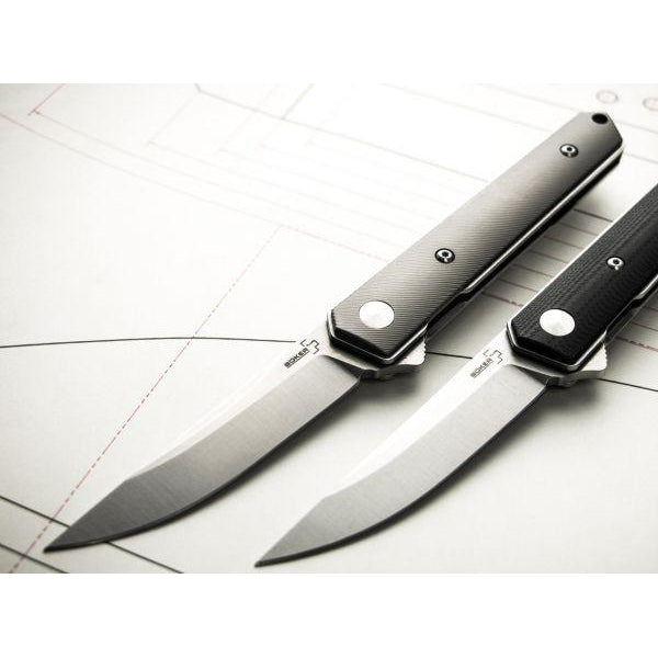 Beautiful knife. Very dense and has a sense of quality about it. My only gripe is that the blade profile is designed to be slicey but the stock is too thick for that. Great for breaking down boxes but not for food prep.