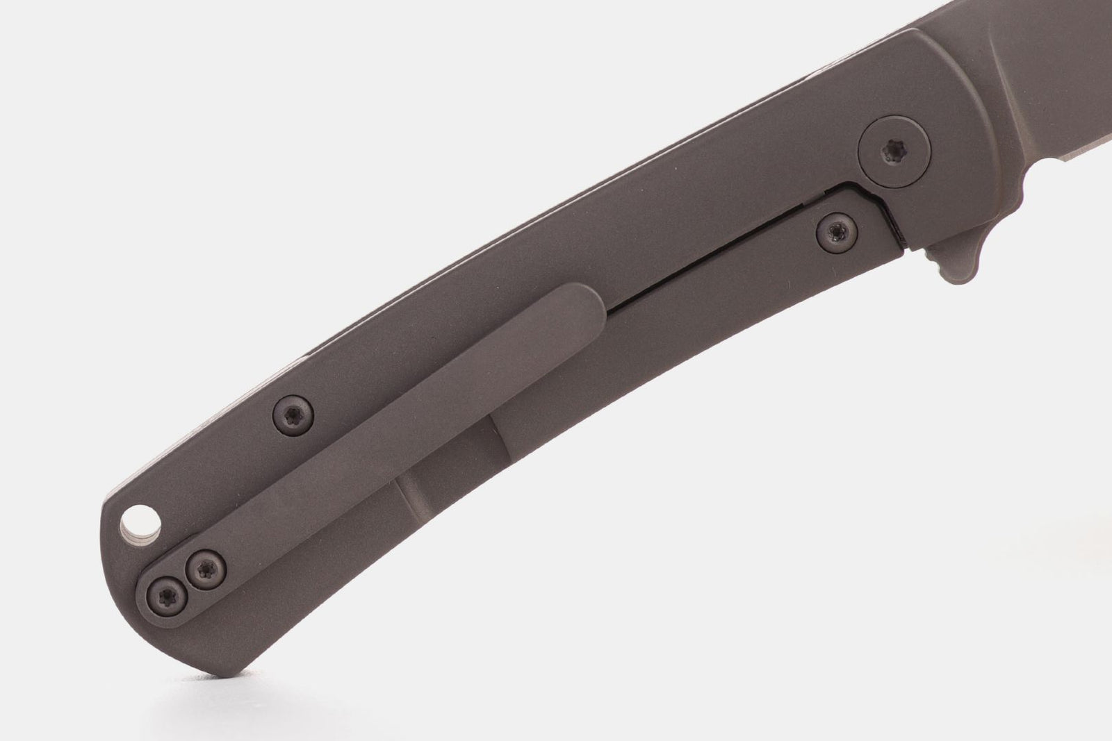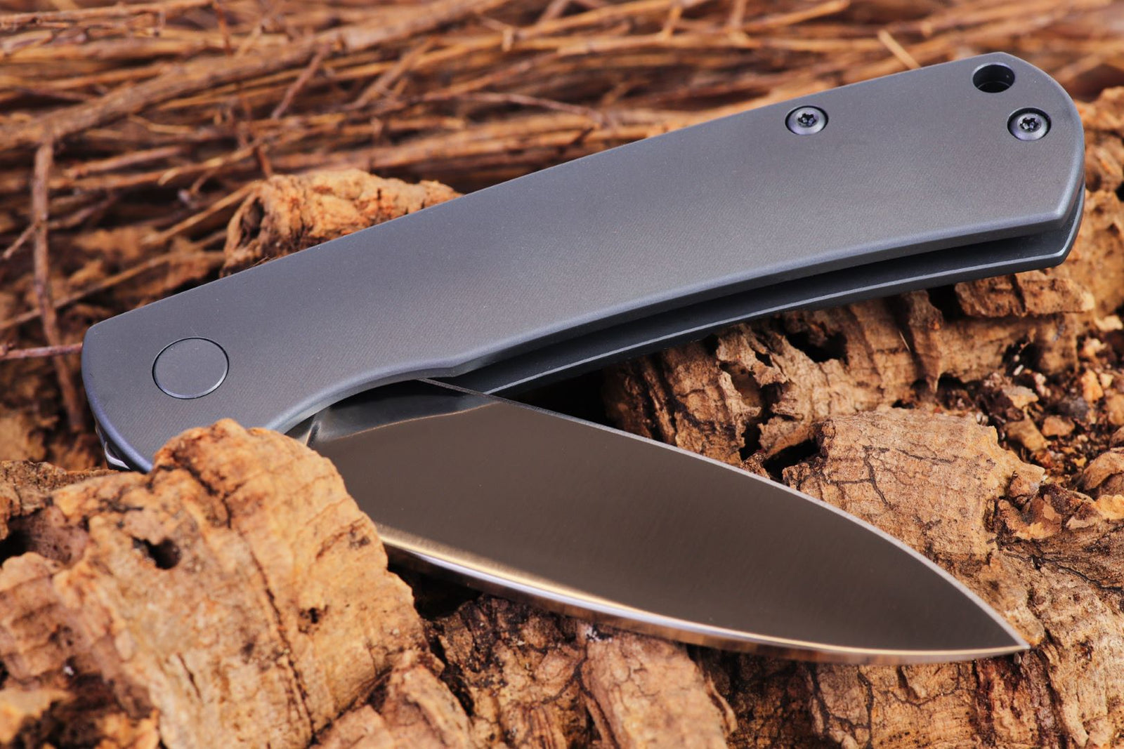 This 6.71-inch titanium frame lock is a master class of minimalism with robust components to get the job done. The Keen Mini Frame Lock Features a smooth, slightly curved titanium handle and a satin or stonewashed-finished spear-point blade. The full flat–ground S35VN steel blade measures 2.88 inches. It's easy to control for slicing, and the spear-point tip provides exceptional piercing power. Deployment is smooth thanks to the caged ceramic-bearing system and subtle flipper tab.