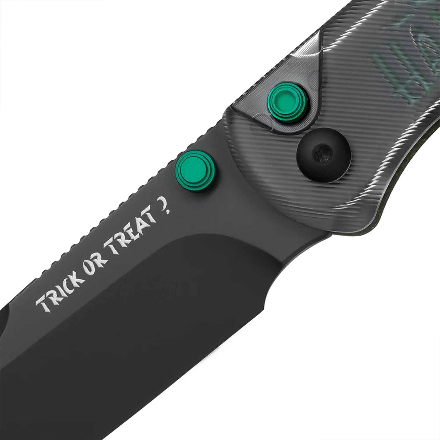 The Halloween Drop Bear 2 Nitro‑V Acrylic & Micarta (V3619.2CDHW1) is a limited‑edition folding knife combining eerie flair with everyday usability. Its 2.92″ Nitro‑V drop‑point blade features a black PVD coating for stealthy appeal. The handle merges acrylic and micarta in a green/black witch‑inspired motif—with “Halloween” text that glows in the dark—and offers secure ergonomics. With a button liner lock, thumb stud opener, deep‑carry reversible clip, and a total weight of just 2.73 oz, it’s equally suited as a collectible or a functional EDC.