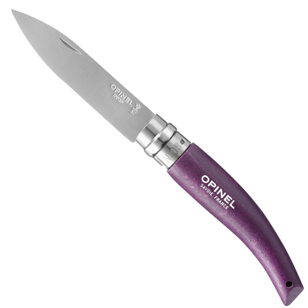This garden knife set includes the following knives: 1 saw knife N°12 apple green handle, 1 garden knife N°08 purple handle, and 1 pruning knife N°08 tangerine handle.