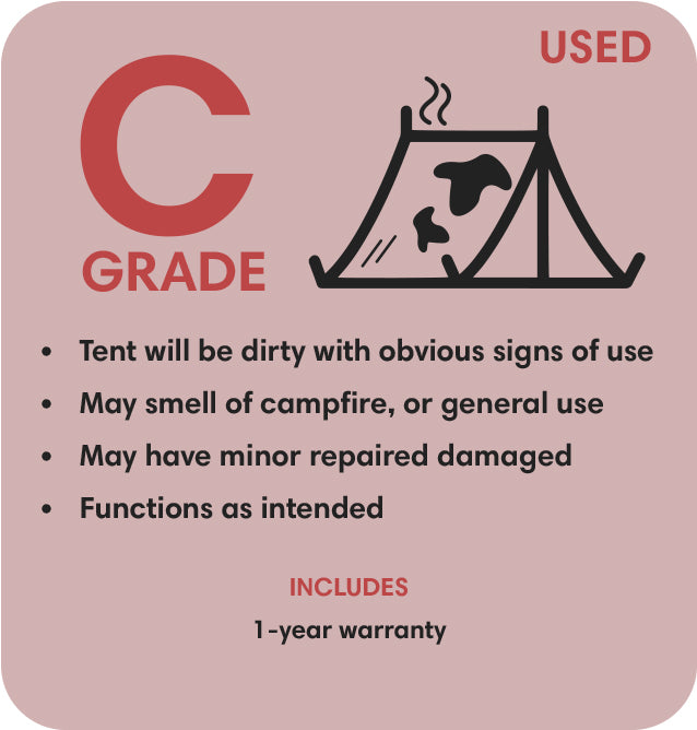 Feel confident in your tent purchase. All our tents have undergone inspections and function as intended.