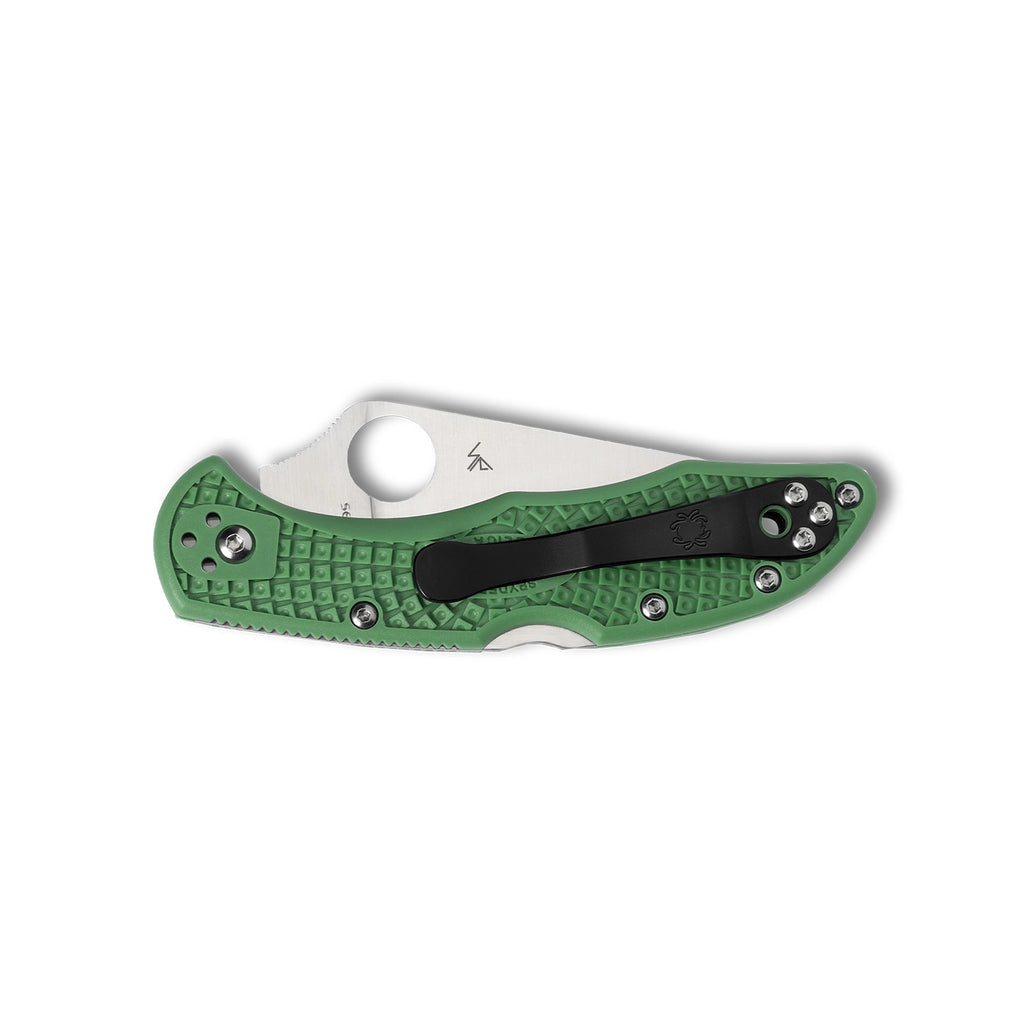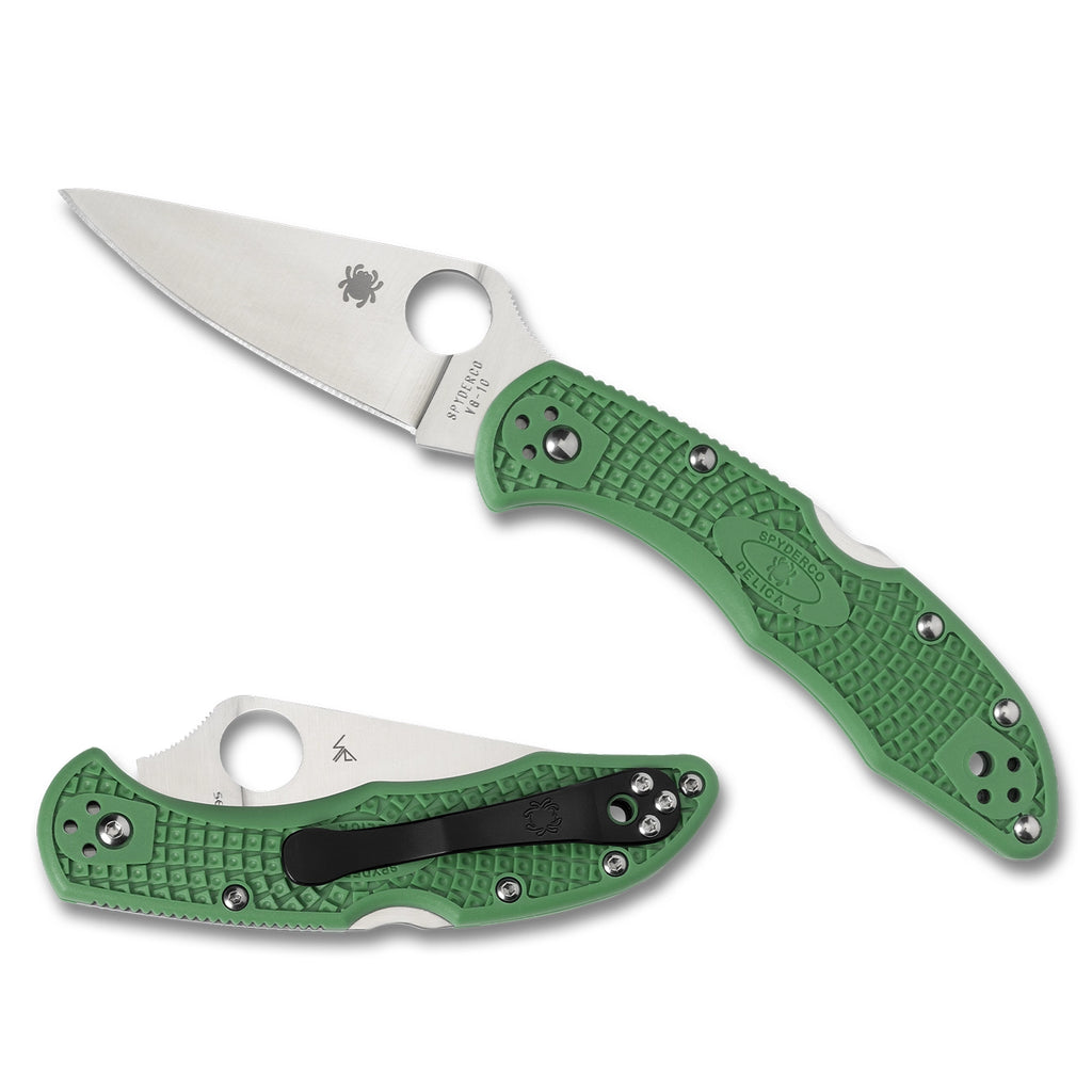 If you already own a Delica or Endura, you have one of the best selling knives Spyderco makes. The knife you have just acquired is a bit different from the normal C10 Endura 4 and C11 Delica 4 Lightweights. They are now available in a range of new handle colors with full-flat ground blades. Their FRN (fiberglass reinforced nylon) handles come in new vibrant tones including blue, green, brown, gray and purple. Molded onto the handle's surface is Bi-Directional Texturing™ for slip-free tactile traction. Inside the handle are dual skeletonized stainless steel liners which strengthen the knife without additional weight and double as an anchor for external and internal components to attach through generating more sturdiness and rigidity. The blades are full flat-ground VG-10 with a thinner highly refined cutting edge and a larger 13mm opening hole. Added to the blade's spine is slip resistant jimping. Phosphor bronze washers smooth out the open/close action and the clip is upgraded to a four-way tip-up, tip-down, left-or right-handed clip.
