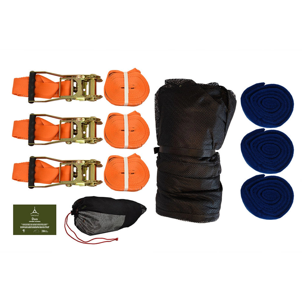 | Components | 1 x Duo 2-Person Hammock (Black Mesh) 3 x Understorage Nets 3 x Heavy-Duty Large Ratchet Buckles (2.5 Ton breaking strength) 3 x 6m / 19 ft Polyester Straps 3 x 1.5m Blue Tree Wraps with Velcro 1 x Hammock Bag |
