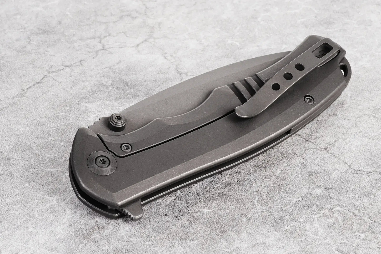 To elevate this remarkable release, we didn't just stop at upgrading to a frame lock and reducing the profile. Recognizing the caliber of this knife, we made another significant addition. While retaining the flipper tab on the blade, we incorporated dual thumb studs for a secondary deployment option. These practical thumb studs not only enhance functionality but also impart a subtle change to the appearance and tactile experience of this beloved folder. At Kaviso HQ, we can't help but fidget with our production samples, as the thumb studs have become our favorite feature. Once in hand, you’ll surely appreciate the modification.